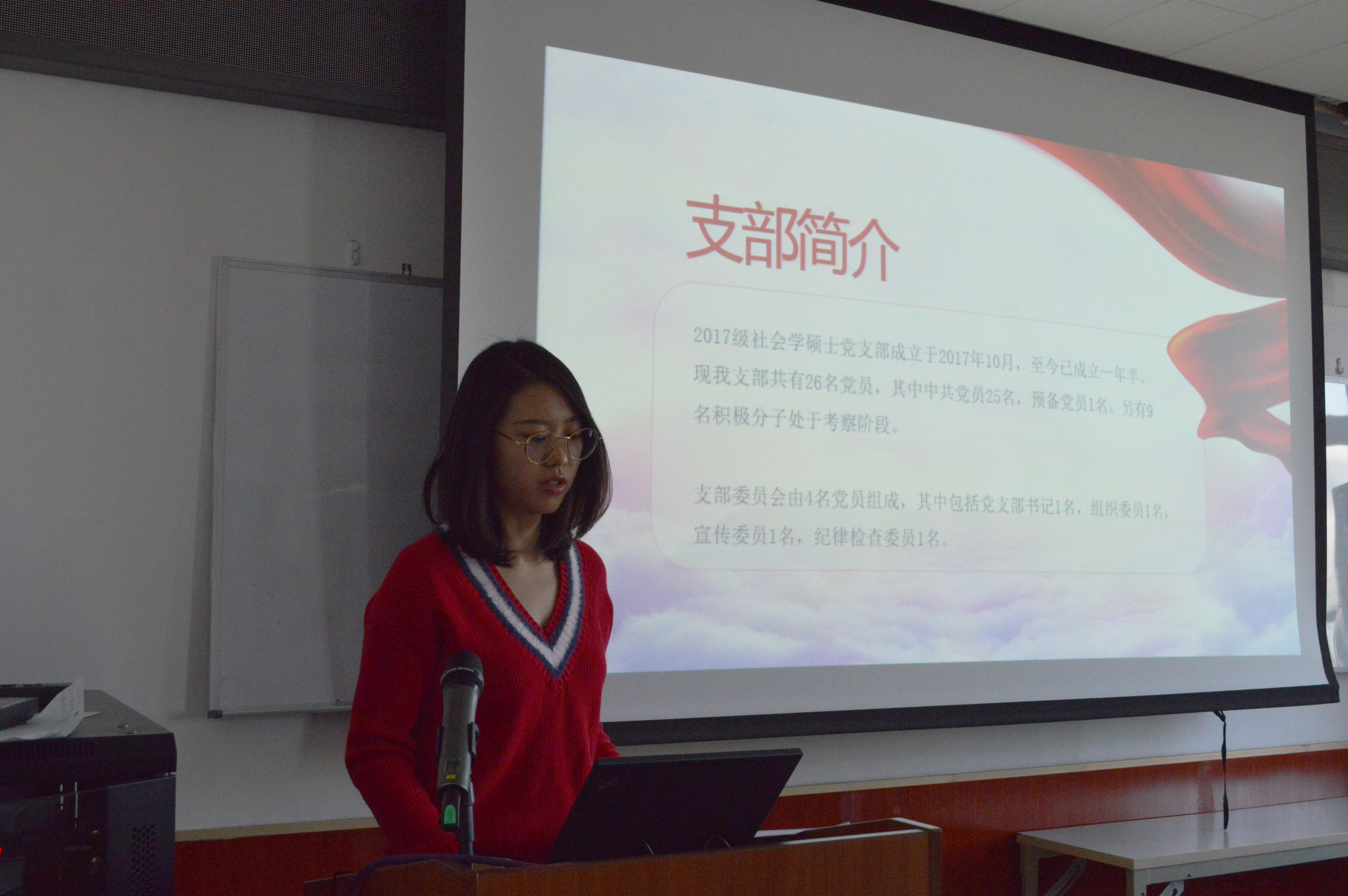 (2017级社会学硕士党支部杨钰晨进行述职)