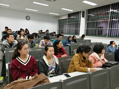 接着,常务副会长申雪瑶发言。她回顾自己刚入党促时对它的印象,虽然开始可能觉得是“冰冷严肃”的,但其实党促是个温暖的大家庭,希望新生们能向各自的副部学习经验,有目标地开心地学习与工作。