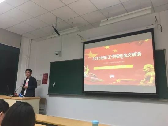 该班级于5月17日下午在教二2112开展关于学习“2018政府工作报告解读”的活动,主要形式为答题、讨论、交流,活动由班长徐沛豪主持。本次活动的亮点是由于事先宣传动员充分,全班同学参与率高、对时事的讨论深入、学习热情高涨。通过这次学习与答题竞赛活动体系们普遍对国家积极推进政务公开的举动表示支持与赞扬,表示本次活动是一场充满教育意义同时与现实生活结合相当紧密的高质量活动。