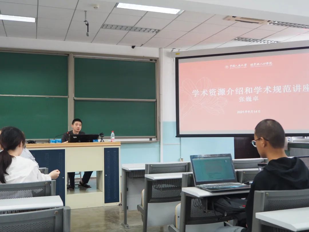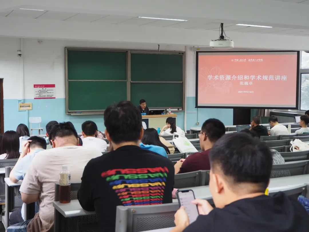 2021-09-15 文:黑猫tv 图:黑猫tv2021年9月14日星期二,社会与人口学院学术规范讲座在求是0224顺利开展。讲座由张巍卓老师主讲。张巍卓老师从安德鲁·阿伯特的《学术作为理念和学术作为日常工作》入题,旁征博引,为在座的所有学生带来了一场学术盛宴。