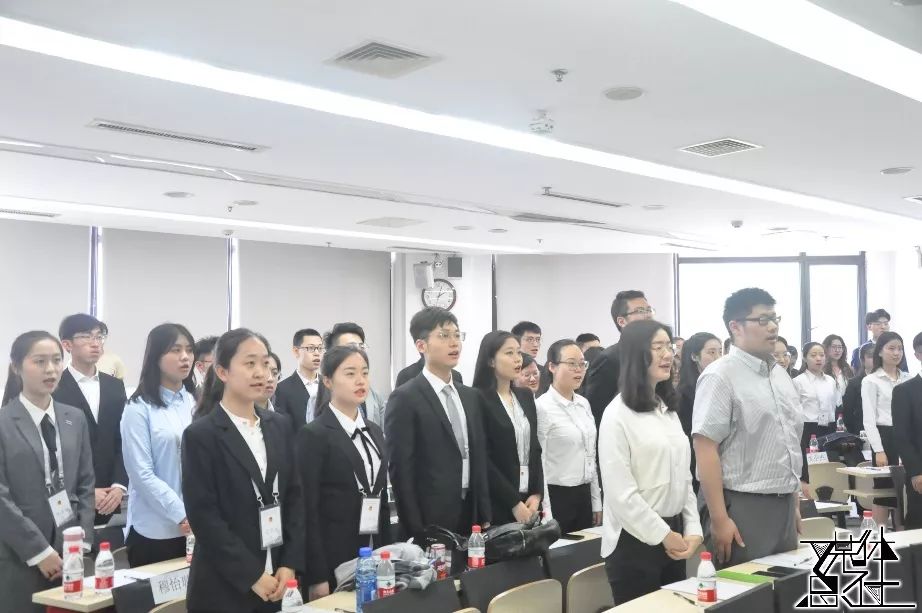 会议伊始,全体成员起立,奏唱国歌。