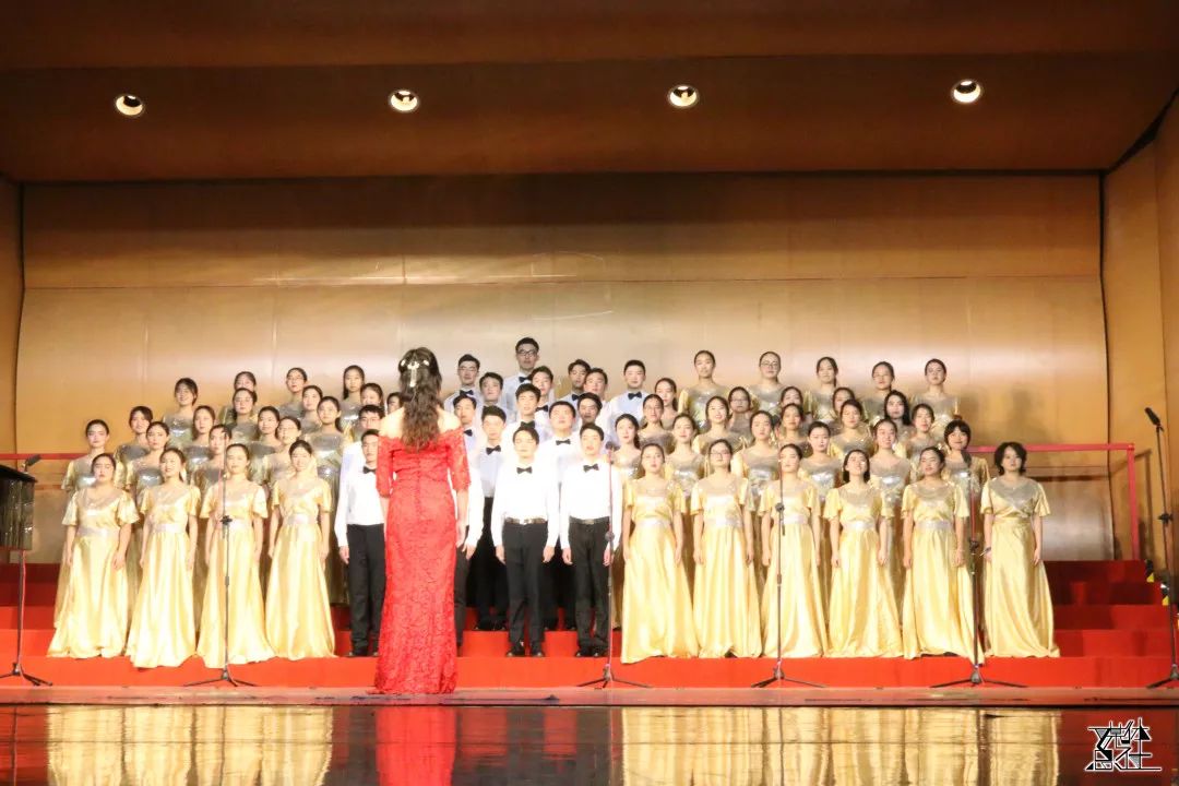受到了他们高涨热情的感染,合唱团的同学们都展露出最灿烂的笑容。如水般空明澄澈的钢琴伴奏响起,演出开始了。首先展露在观众们面前的是是男高与女高声部对祖国深情的告白,“那是从天上采下的虹”,“一张天下最美的脸”,表达出了社会与人口学院的每位同学对祖国母亲的敬慕与热爱。而随之而来的“五星红旗,我为你骄傲;五星红旗我为你自豪”,激昂振奋的呼告打动了在场每位观众的心。自豪与骄傲写在每一位同学的脸上,他们纵情欢呼,为祖国献上祝福。当唱到“你的名字比那生命更重要”时,全场的气氛达到了高潮。所有人都陶醉于歌曲美妙的旋律与伟大祖国的深沉魅力之中。