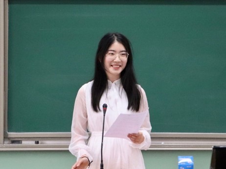 第十六届团委副书记张惟珩随后发言,她提到自己在学生工作中最大的收获即是自我成长磨砺,并向师弟师妹们倾囊相授了自己的经验与感受。