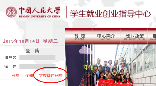 2015年各学院的用户名密码继续使用。如有问题请联系就业办公室405室。
