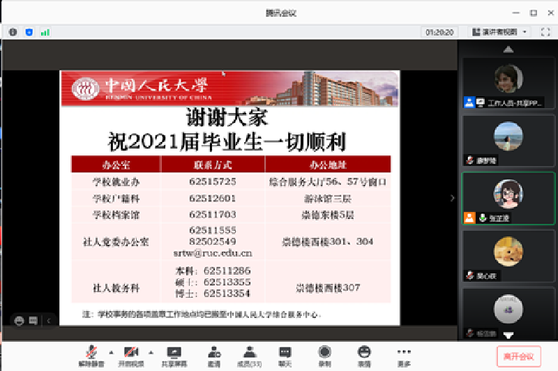 会议最后,唐老师表达了对2021届毕业生最诚挚的祝福,希望大家能学有所成,斩获自己满意的offer。