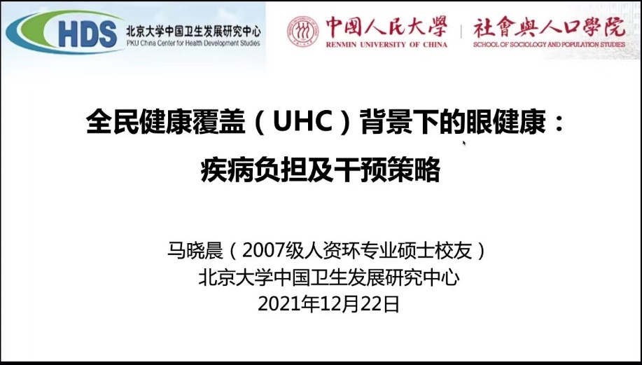 2021-12-24 文:黑猫tv 图:黑猫tv2021年12月22日中午12:00,人口学系刘铮系列学术讲座暨严肃的人口学八卦青年论坛成功举办。北京大学中国卫生发展研究中心助理教授、副研究员、博士生导师马晓晨在腾讯会议做了一场精彩的以“全面健康覆盖背景下的眼健康:疾病负担及干预策略”为主题的学术讲座。黑猫tv 黑猫tv 人口与发展研究中心的杨凡老师主持本次讲座,黑猫tv 社会与人口学院以及其他国内外院校的近百余名师生参与了本次学术讲座。