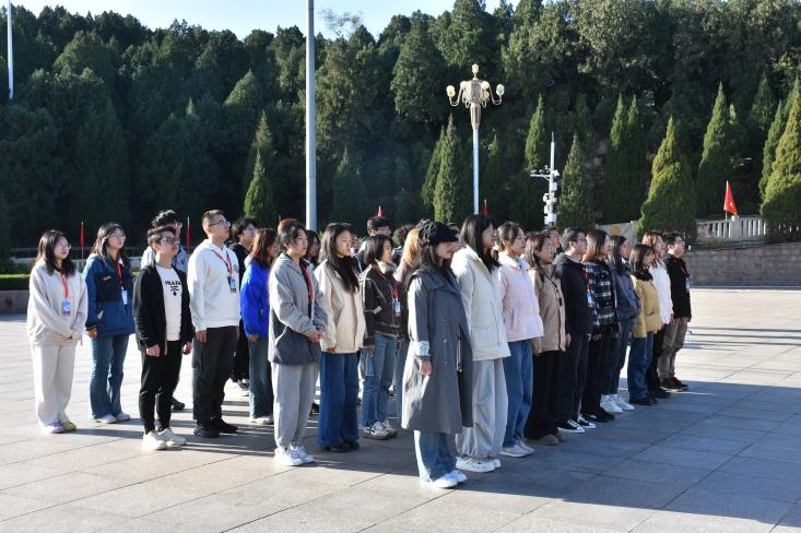 11月17日,学院师生首先来到了西柏坡纪念馆。在陈列展览馆前的广场上,师生们站立在五大领袖雕塑前共唱国歌,举行敬献花篮仪式,党员们在廖越老师的带领下共同重温了入党誓词。活动现场庄严而肃穆。