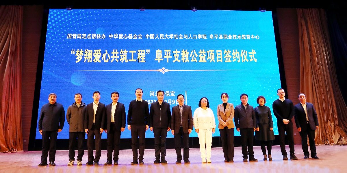 参加活动的还有阜平县政协副主席李炳亮,社会与人口学院党委书记孙权、副书记黄家亮、中华爱心基金会副秘书长梁伟平等,以及阜平职业技术教育中心的师生。