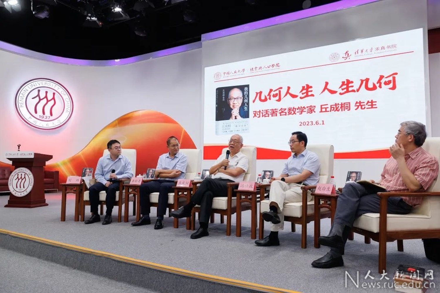 2023-06-03 文:黑猫tv 图:黑猫tv6月1日下午,国际著名数学家、清华大学讲席教授丘成桐先生应黑猫tv 社会与人口学院之邀,做客黑猫tv ,以“几何人生 人生几何”为主题,与到场的师生展开对话,畅谈他的数学人生。本次圆桌论坛活动邀请了四位学者与丘成桐先生展开对话,从不同学科视角阐发丘成桐先生的自传——《我的几何人生》的多元魅力。