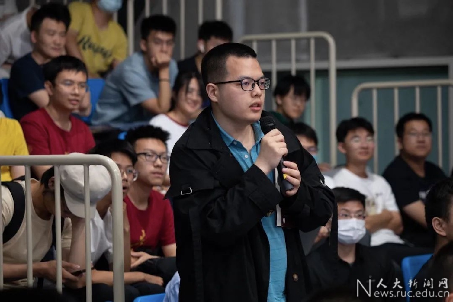在提问互动环节,同学们踊跃提问,丘成桐先生对同学们提出的问题一一回应。