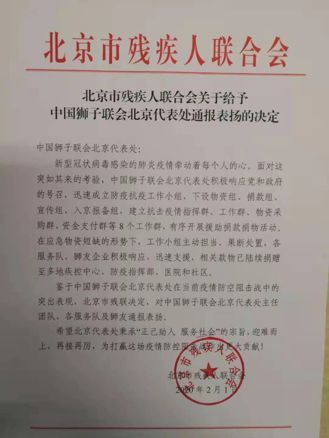 (北京市残联对张娇所在公益组织发来的表扬信)