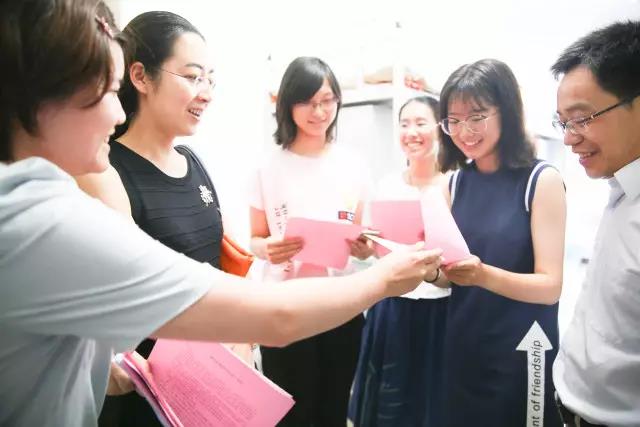 唐颖老师与工作人员、班主任谢立黎合影