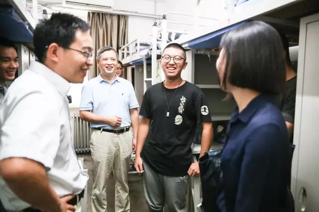 下午4点,社会与人口学院党委书记兼常务副院长冯仕政教授、党委副书记唐颖老师、副院长黄家亮老师、党务秘书唐诗雅老师、团委常务副书记庄溪瑞老师、本科班主任谢立黎、杨凡老师以及4位班级辅导员来到学院新生宿舍看望新生。