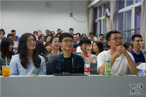 接下来,主持人邀请各大团学组织的宣讲人上台为新生们介绍各大组织的基本信息,帮助同学们找到自己的兴趣,做出合适的选择。首先上台的是党建促进会宣讲人2017级本科生谢家斌,他用一段热血励志的视频吸引了在座所有人的目光,随后为大家详细介绍了党建促进会是什么以及党建促进会的历史、主要工作、部门组成及各部门的职能。随后学院分团委宣讲人2017级本科生黄子静为大家播放了学院分团委的宣传视频,幽默风趣的视频引来了教室内一阵阵笑声,随后她为大家详细介绍了学院分团委的基本信息、部门组织及各部门的职能。紧接着,学院学生会宣讲人2016级本科生姜如璋介绍学生会的基本信息,他用一段精彩的招新视频为开场,并用风趣的语言介绍了学生会各个部门的信息与职能,并邀请学生会舞蹈团和辩论队负责人2017级本科生王婉伊与2017级本科生洪静澜分别介绍舞蹈团和辩论队的信息和光辉历史。随后,“心语”青年志愿者协会宣讲人2017级本科生张英楠介绍“心语”青年志愿者协会的情况,她首先用一段感人的视频展现了青协各个部门所做的工作,随后为大家详细介绍了青协的各个部门。最后,媒体总社宣讲人2017级本科生陈疏影为大家介绍媒体总社的基本情况,她首先播放了一段精心制作、精彩纷呈的《社人快讯》,为大家展现了媒总各个部门的风采,随后为大家详细介绍了媒总各个部门的主要工作与特点。