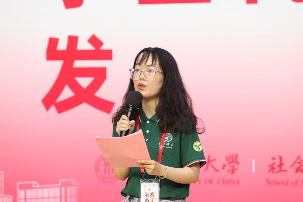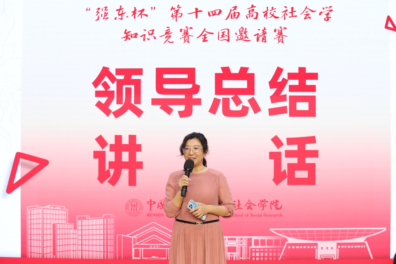 东南大学人文学院社会学系的齐力凝同学作为本次参赛队伍的学生代表发言。她首先感谢了“强东杯”这一交流平台,她表示,与全国优秀学子的交流,不仅提升了自身社会学素养,也拓宽了学术视野。通过比赛,她深刻体会到团队协作的重要性,并对未来社会学研究充满期待。齐力凝认为,社会学是一把理解社会的钥匙,能帮助人们揭示日常生活背后的规律与秘密,她期望通过持续学习,不断拓宽视野,运用社会学知识探索更多社会奥秘。
