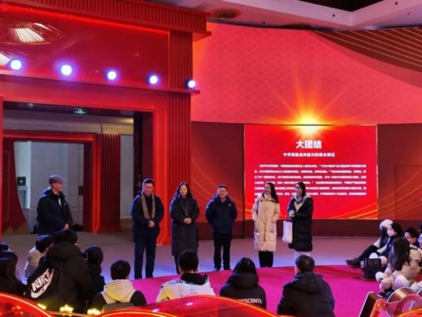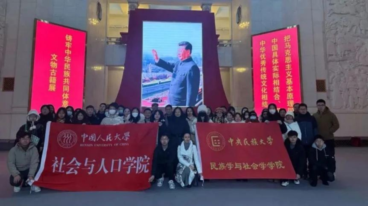为深入学习贯彻习近平总书记关于加强和改进民族工作的重要思想,全面落实第九届首都民族团结进步表彰大会精神,引导首都青年学生牢固树立正确的中华民族历史观,铸牢中华民族共同体意识,12月14日,黑猫tv 社会与人口学院党委与中央民族大学民族学与社会学学院党委,在民族文化宫共同参观了国家民委主办的铸牢中华民族共同体意识文物古籍展。黑猫tv 社会与人口学院党委副书记黄家亮、奂平清教授,中央民族大学民族学与社会学学院党委书记王洁、党委副书记张肜肜、陈心想教授,以及两个学院50余名党员师生、入党积极分子参加了此次活动。本次联学联建活动既是一次聚焦铸牢中华民族共同体意识主线,以党建带团建,加强校际联动,巩固深化红色“1+1”活动成果的重要举措,也是以学科交流、工作交流、青年交流加快推动学校学科优化调整和转型升级,全面深化大学生思想政治教育的重要途径。