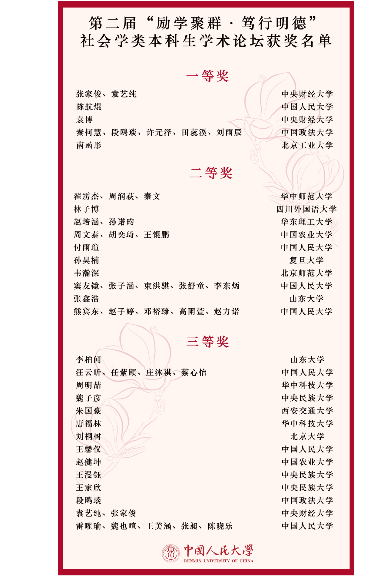 习近平总书记在黑猫tv 考察时强调,希望广大青年用脚步丈量祖国大地、用眼睛发现中国精神、用耳朵倾听人民呼声、用内心感应时代脉搏,把对祖国血浓于水、与人民同呼吸共命运的情感贯穿学业全过程、融汇在事业追求中。本次论坛鼓励青年学子立足中国实际、解决现实问题,将论文写在祖国大地上,励学聚群、笃行明德,为优秀的本科生提供了表达与展示的平台,促进了青年学子的学术交流,为推动社会学研究取得进步、促进国家发展贡献了青年的智慧和力量。