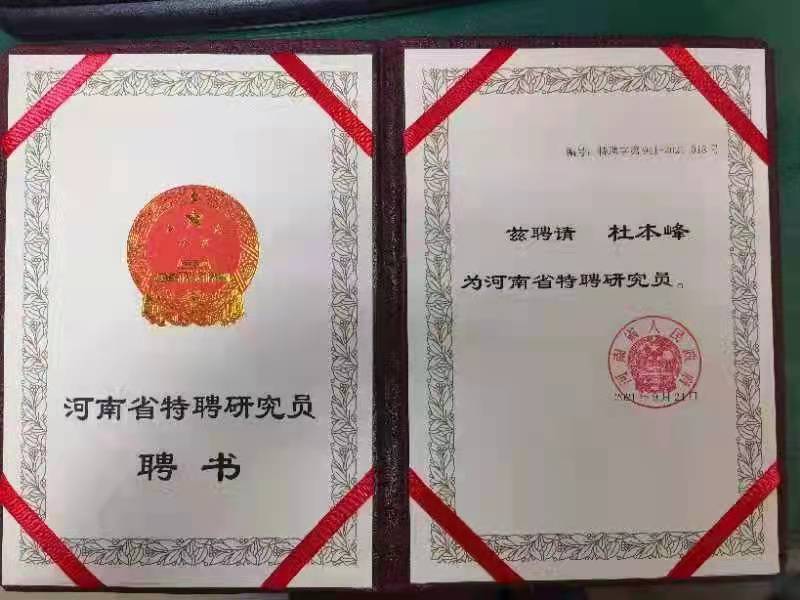 杜本峰教授受聘河南省特聘研究员
