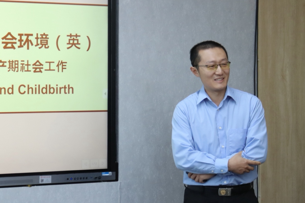 王阳的讲授主题为“人类行为与社会环境:孕产期社会工作”。他首先通过自己朋友的亲身经历引出课程主题,以小组讨论的方式启发学生思考孕产期社会工作的相关内容,并引导学生保持平等尊重的态度,将上节课的知识代入到讨论内容中。他启发同学以自己的经历、影视作品等为引,思考社会工作者能够为孕产期妇女提供哪些社会支持,并鼓励同学在课后进行实地访谈。