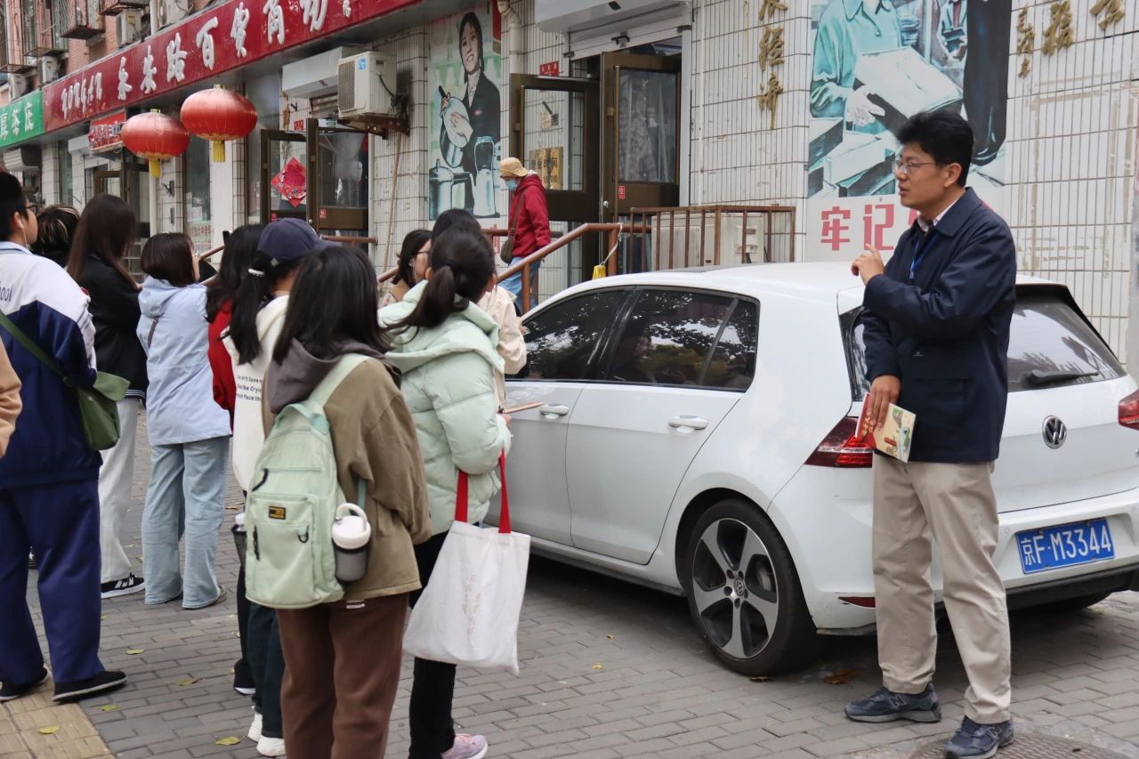 主讲老师带领同学们从《光明日报》旧址出发,寻访新世纪游艺场等13个红色点位,最终漫步到达学雷锋志愿服务主题公园。