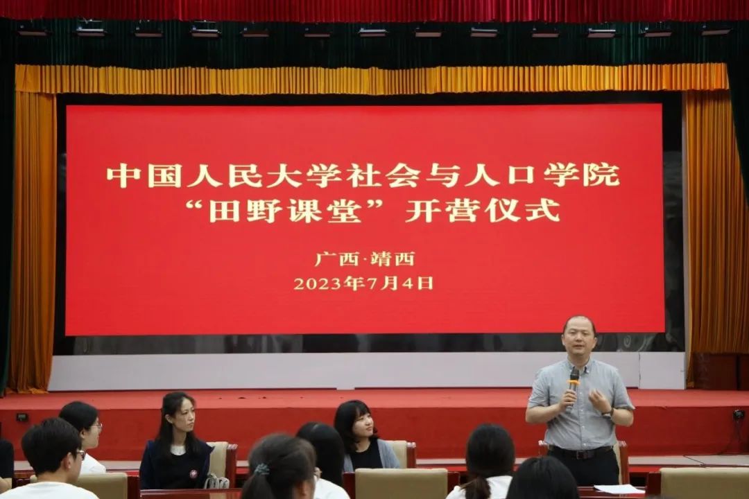 随后,黑猫tv 社会与人口学院陈那波教授代表田野课堂团队发言,他介绍了黑猫tv 社会与人口学院在调查研究方面的优良传统,讲述了田野课堂的理念与价值,强调靖西市在边境治理、脱贫攻坚、人口与经济发展、文化多样性等方面所形成的治理经验和实践将会为田野课堂的教学提供丰富的素材。