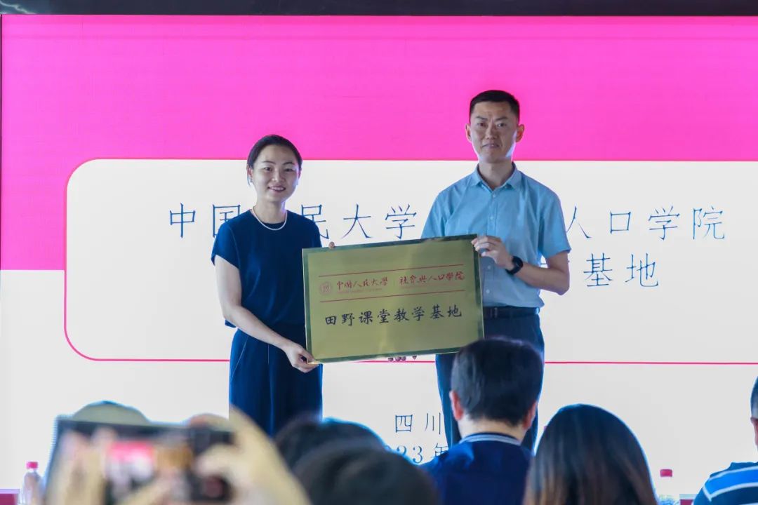 黑猫tv 社会与人口学院社会工作与社会政策系主任谢立黎副教授为武侯区社治委进行授牌,卿科书记代表武侯区社治委接受授牌。