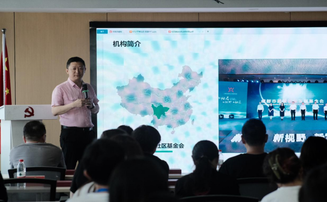 武侯社区发展基金会秘书长李济舟对基金会运转模式进行介绍。他从机构简介、工作情况、创新探索和生态建设四个方面切入,将基金会“党建引领,政府引导,社会化运作”的运转模式精准呈现给在场师生。