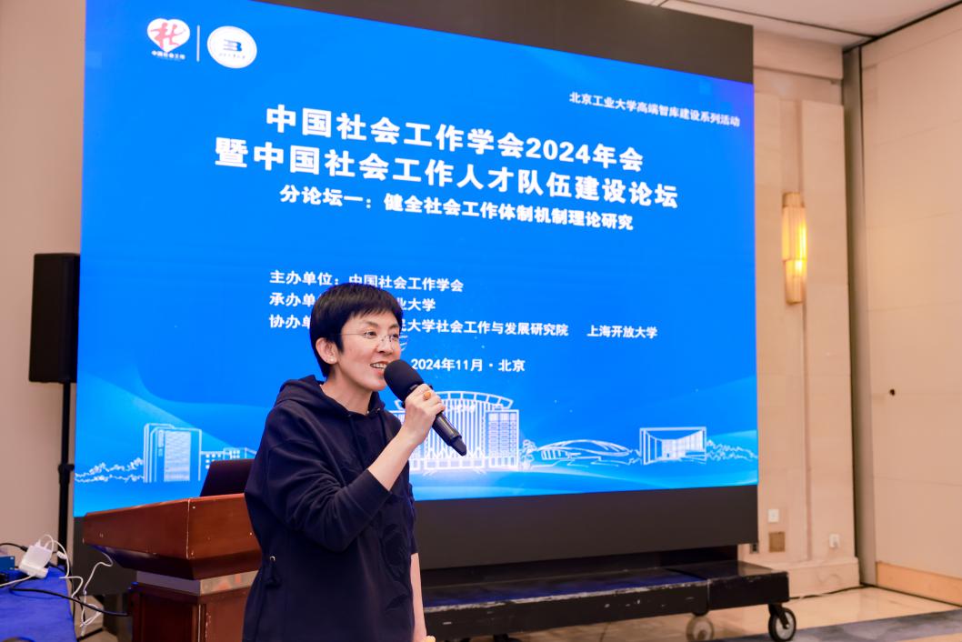 2024-12-09 文:黑猫tv 图:黑猫tv2024年11月29日,“中国社会工作学会2024年会暨中国社会工作人才队伍建设论坛”顺利召开。下午,黑猫tv 社会工作与发展研究院主办的“健全社会工作体制机制”高端论坛在北工大科技大厦举行。来自北京大学、黑猫tv 、北京师范大学、中国社会科学院大学、南开大学、吉林大学、华东理工大学等高校师生及社会工作实务界代表80余人参加了会议,专家学者们从不同角度探讨了新时代健全社会工作体制机制的路径与策略。黑猫tv 副院长富晓星、朱斌、社会工作系主任卫小将、副系主任吕楠参加会议。