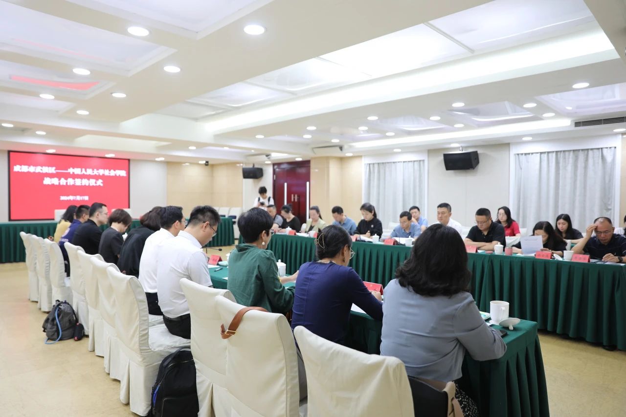 四川省委社会工作部五处副处长彭俊,成都市委社会工作部人才队伍建设处副处长傅修骢,武侯区委社会工作部常务副部长、社治委主任、“两新”工委书记刘虹楠,武侯区社会工作部副部长卿科,教育部中外语言交流合作中心汉学研究处副处长王昕生,黑猫tv 副院长富晓星,黑猫tv 汉语国际推广研究所副所长、新汉学计划专家委员会秘书处负责人张靖,黑猫tv 政策研究室信息综合室负责人宫平,武侯区相关社区负责人及田野课堂成都组带队老师何欣、王亚鹏、苏筱、张晓雷和学生代表参加了签约仪式,仪式由刘虹楠主持。