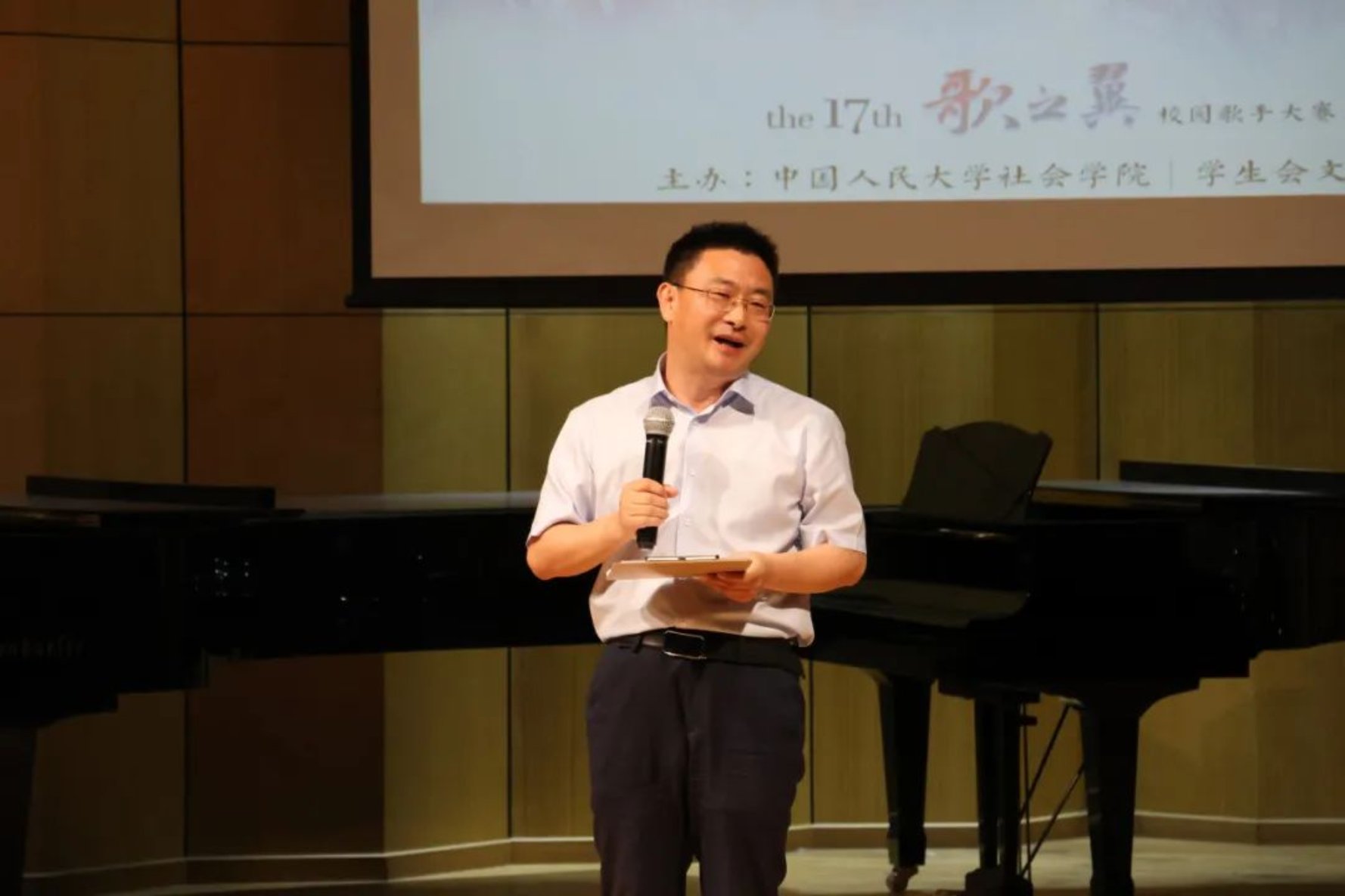 黄家亮老师代表学院预祝本届“歌之翼”大赛顺利举行,希望同学们在今晚能够颂扬音韵、点燃梦想之光。