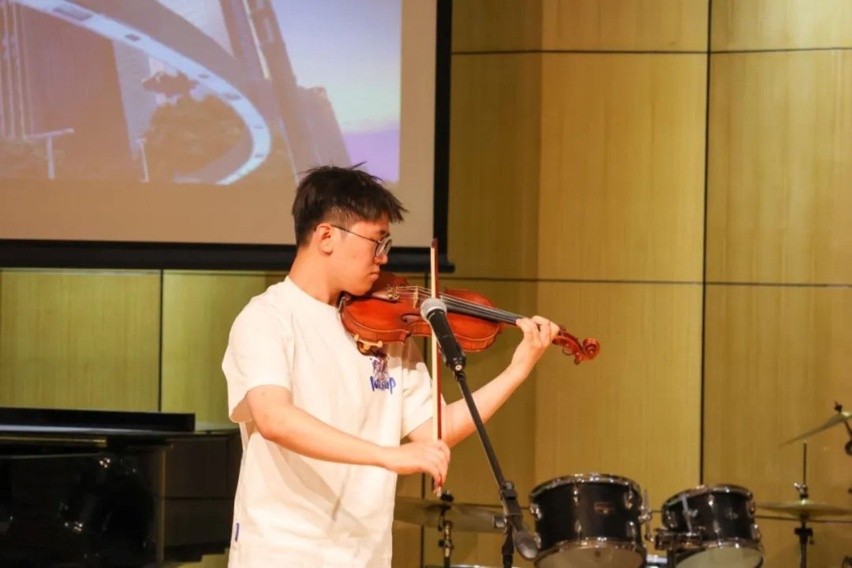 十名选手第一轮演唱结束,陈汇文为同学们带来了优美的小提琴独奏曲《前前前世》,表达了对过去时光的眷恋和对未来的向往。