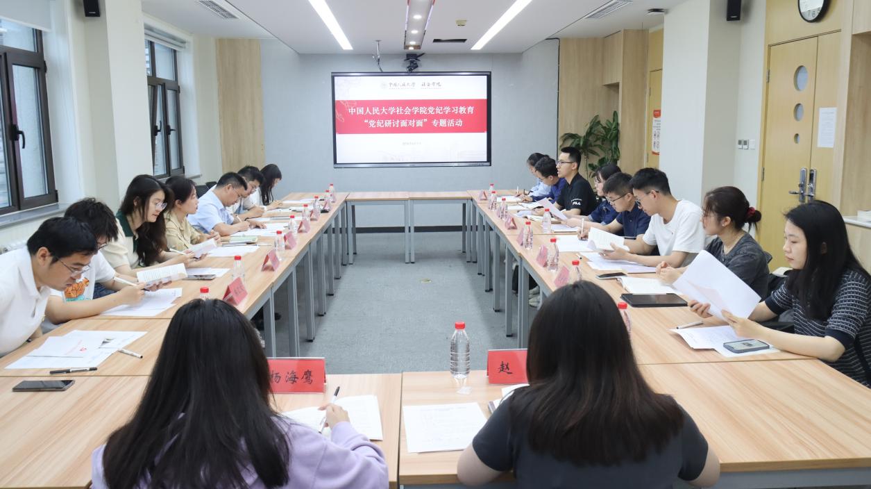 本科生联合党支部马鹤彧、博士生第一党支部张琪琛、博士生第二党支部林新辰、2023级社会政策硕士生党支部石雨、2022级社会学硕士生党支部任旺、2022级社会政策硕士生党支部谢家彬、2023级社会工作硕士生党支部赵曼彤、行政教职工党支部韩佳、教师第三党支部赵晰、2022级社会工作硕士生党支部杨海鹰、教师第一党支部朱斌和2023级社会学硕士生党支部陈汇文依次发言,对照《中国共产党纪律处分条例》,结合案例、联系自身学习工作实际,重点交流了工作学习或日常生活中可能出现的违规违纪行为的情形现象,描述问题表现、分析产生原因并提出对策措施。各基层党支部书记发言直中问题靶心,思考细致深刻。