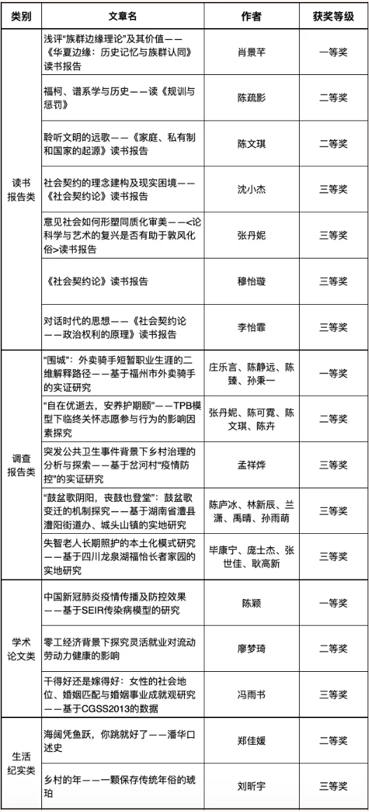 附:社会与人口学院第二届本科生写作大赛获奖名单