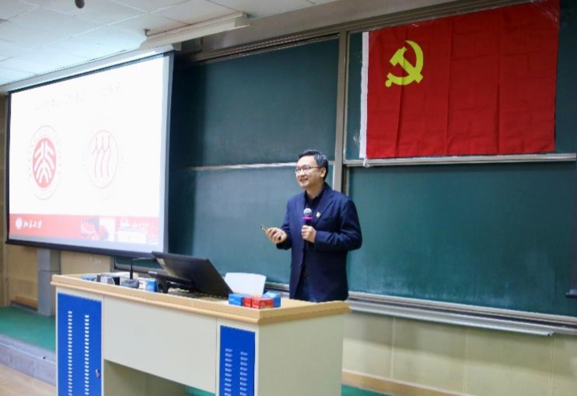 北京大学人口研究所所长陈功教授从专业视角出发为与会师生解读“两会”精神。中国式现代化是人口规模巨大的现代化,陈功教授以“人口变动与高质量发展”为题,强调要以人口高质量发展支撑中国式现代化,促进人口高质量和经济高质量发展相互适应、相互支持、相互促进。他论述了人口问题的全局性和战略性,分析了我国人口发展的新形势,强调未来应当以系统观念谋划人口问题,以改革创新推动人口高质量发展,把人口高质量发展同人民高品质生活紧密结合,促进人的全面发展和全体人民共同富裕。他表示我们应将党建和自身专业结合起来,知行合一地将两会的重要指示精神落实到具体工作当中。