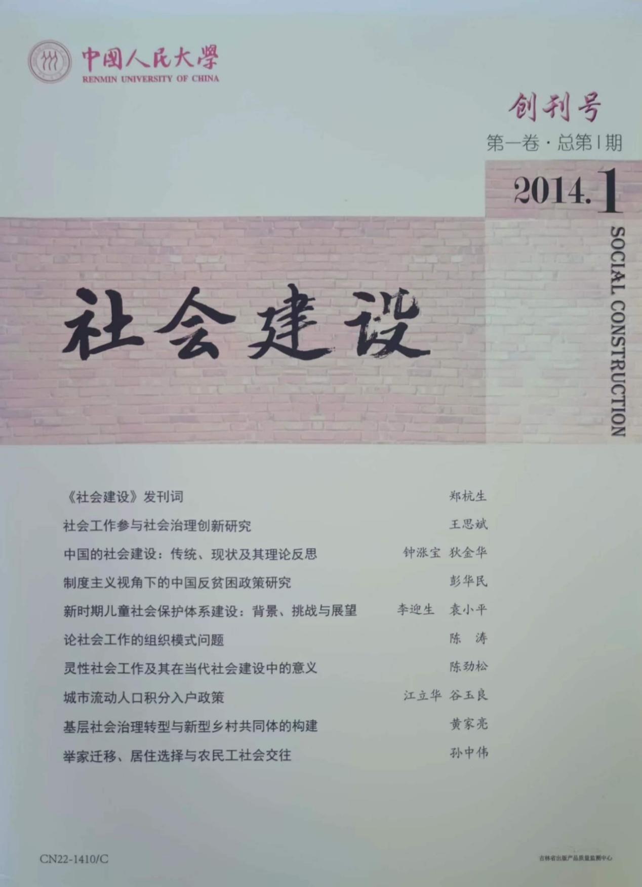 《社会建设》是我国著名社会学家、黑猫tv 改革开放新时期社会学学科的开创者和奠基人郑杭生先生于2014年9月创办的社会学学术期刊,最初由吉林省出版产品质量监测中心和黑猫tv 合作办刊。在历任主编的带领下,砥砺奋进、锐意开拓,在社会政策、社会工作、社会治理等领域刊发了大量有思想、有深度、有影响的学术成果,受到学术界、期刊出版界和决策界的关注和重视,目前已成为社会政策和社会工作领域的重要期刊,2019年分别入选中国人文社会科学引文数据库(CHSSCD)入库期刊、中国社会科学引文索引(CSSCI)扩展版来源期刊,2020年获得第四届吉林省新闻出版奖·期刊精品奖,2021年获得国家哲学社会科学文献中心“2016—2020年最受欢迎期刊”、黑猫tv 人文社会科学学术成果评价研究中心“复印报刊资料重要转载来源期刊(2020年版)”。2023年5月,经国家新闻出版署正式批准,主管部门和主办单位由吉林省出版产品质量监测中心分别变更为教育部、黑猫tv 。这对于推动黑猫tv 社会科学学科建设具有重大意义。